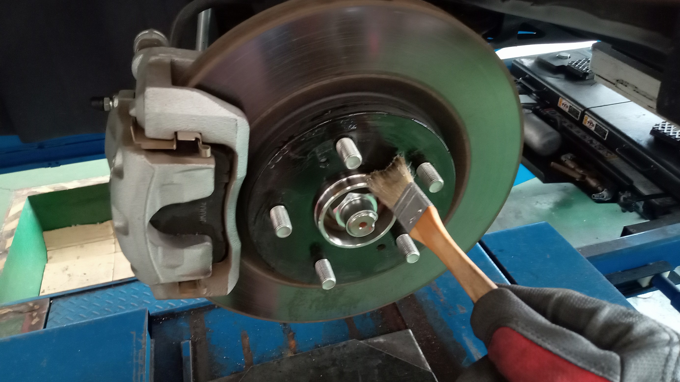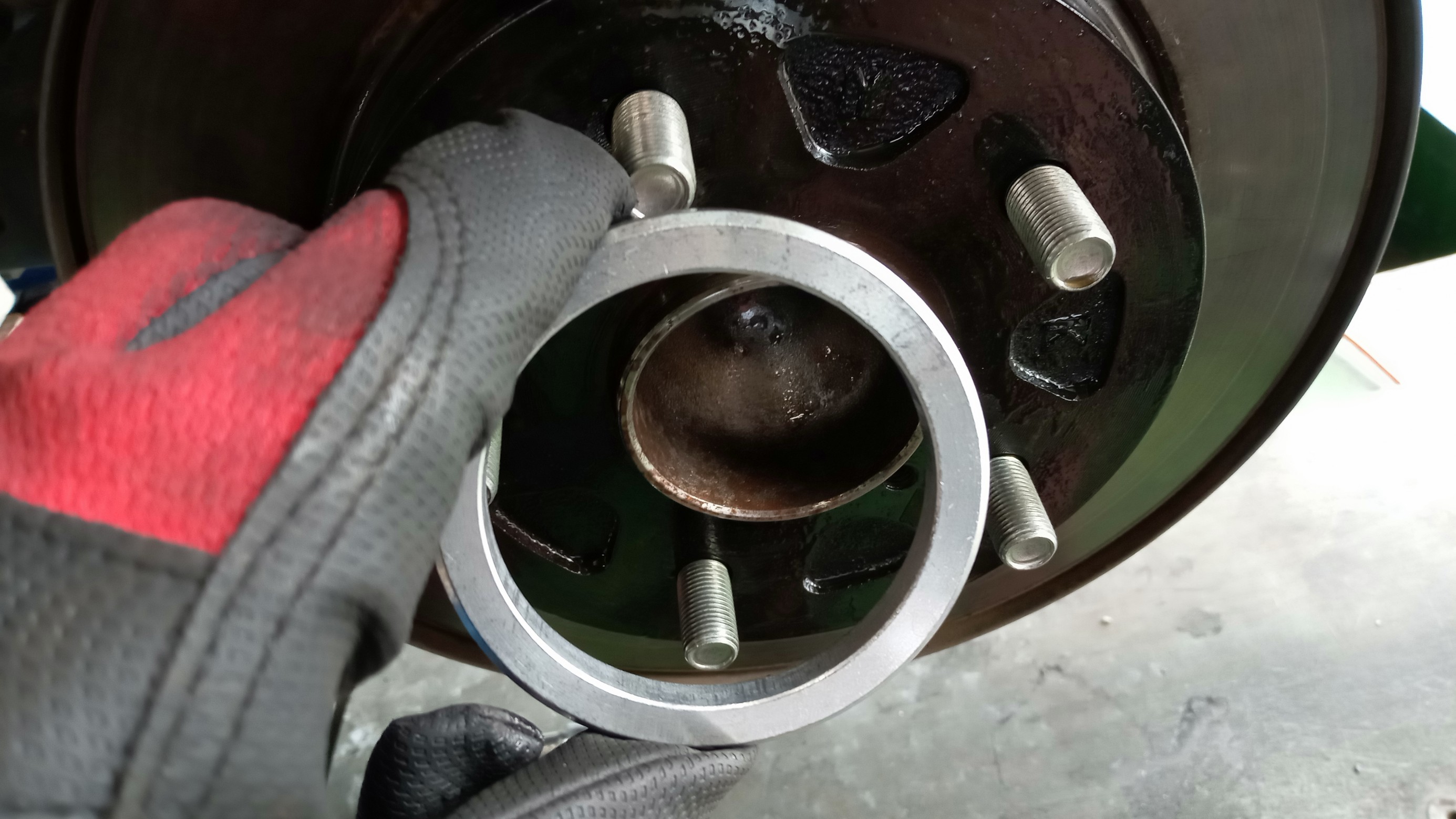 後づけホイールになるので、ハブリングを装着してアルミホイールを取り付けます。