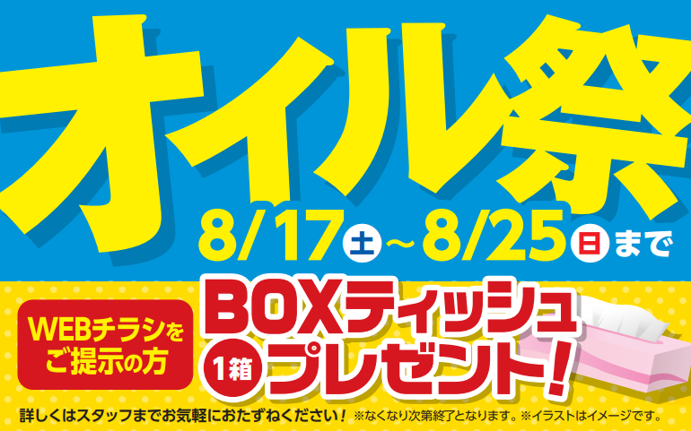 また、期間中WEBチラシをご持参のうえ、オイル交換実施いただきますと、