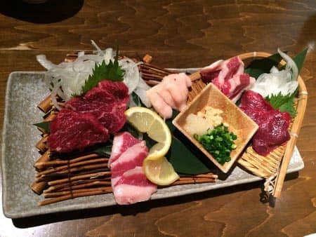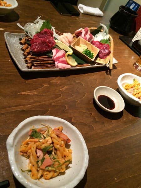 鍋と手羽焼きと、なんと、馬刺しです!!