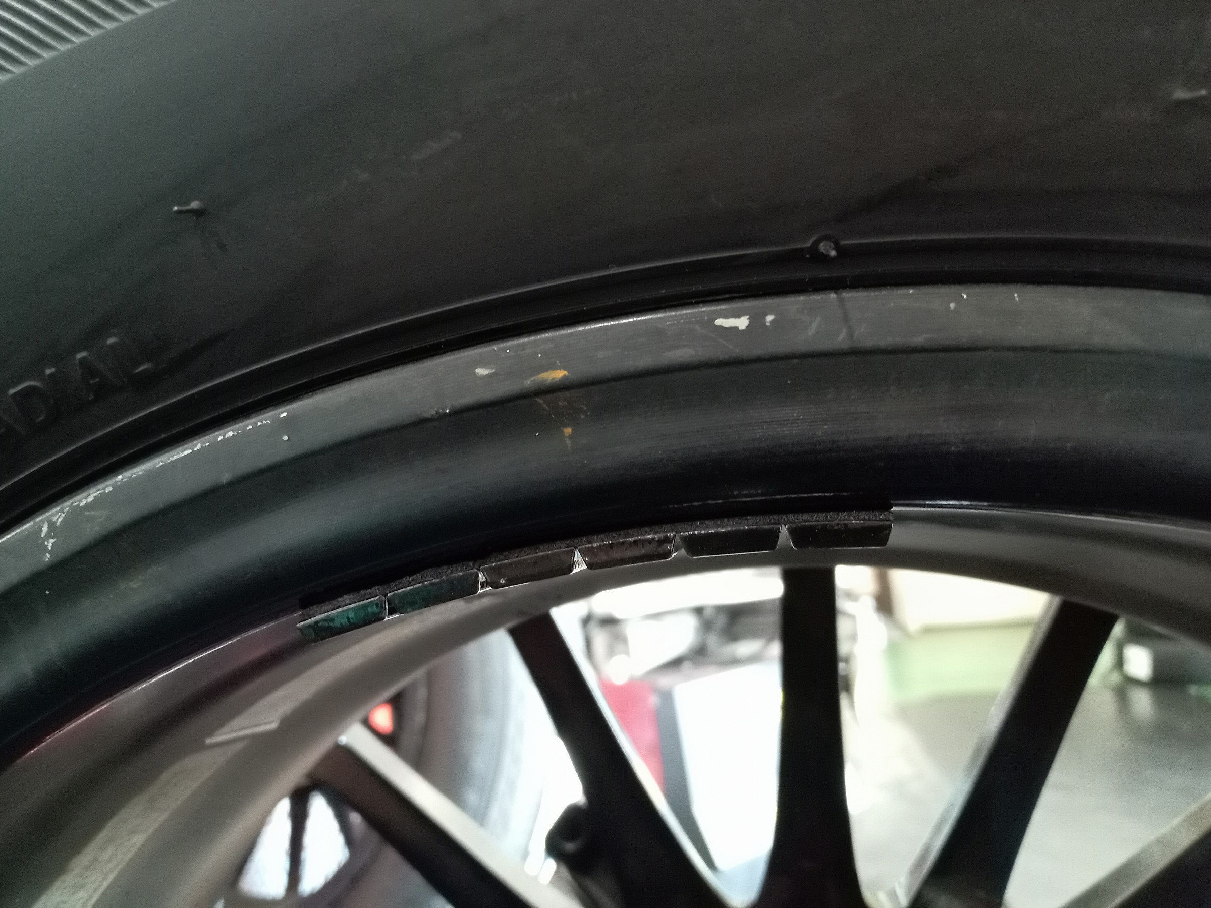 バランス調整は、黒いアルミホイールになりますので、目立たないよう黒いバランスウエイトを貼り付けて調整!