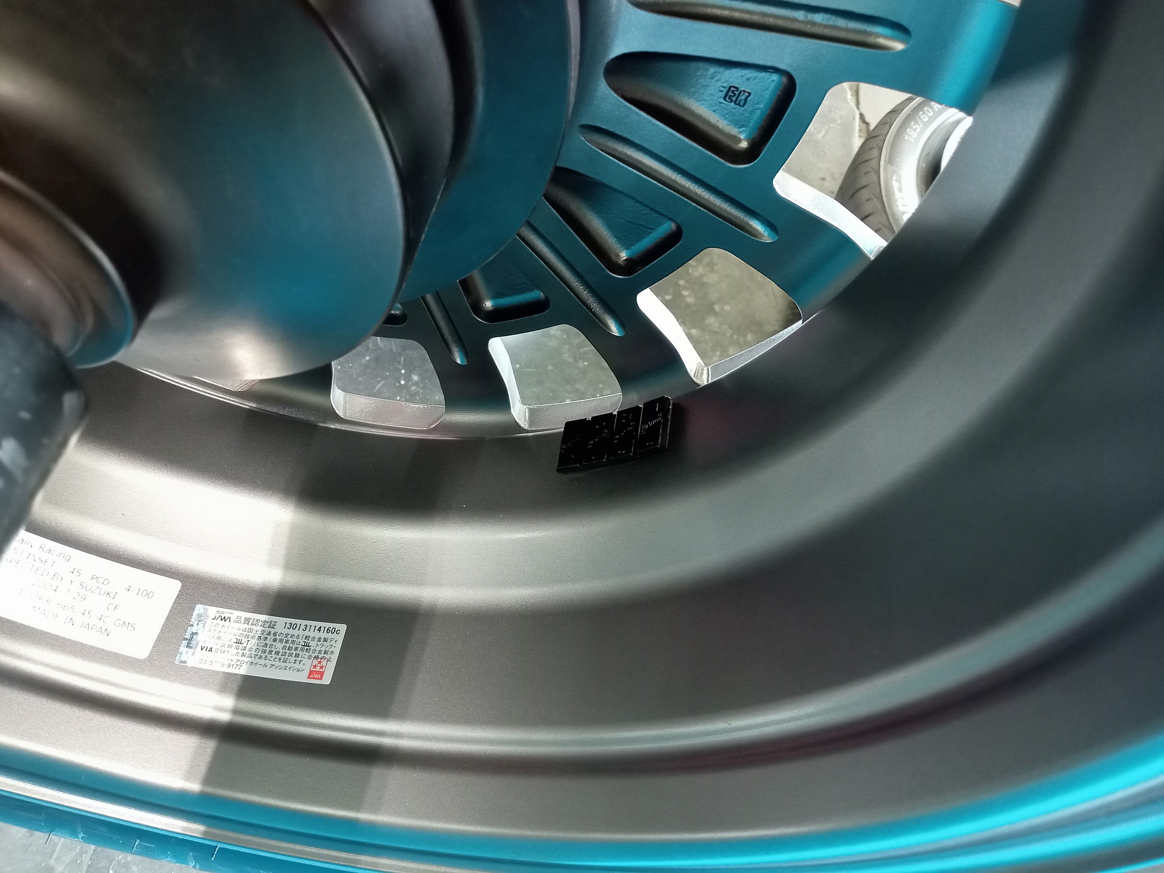 バランスウエイトは、目立たないよう黒で貼り付け。