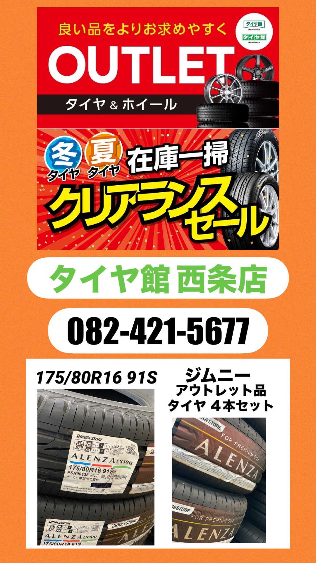 【175/80R16 ジムニー】タイヤ館西条店★店頭在庫4本/1台分のみ★アウトレットタイヤ
