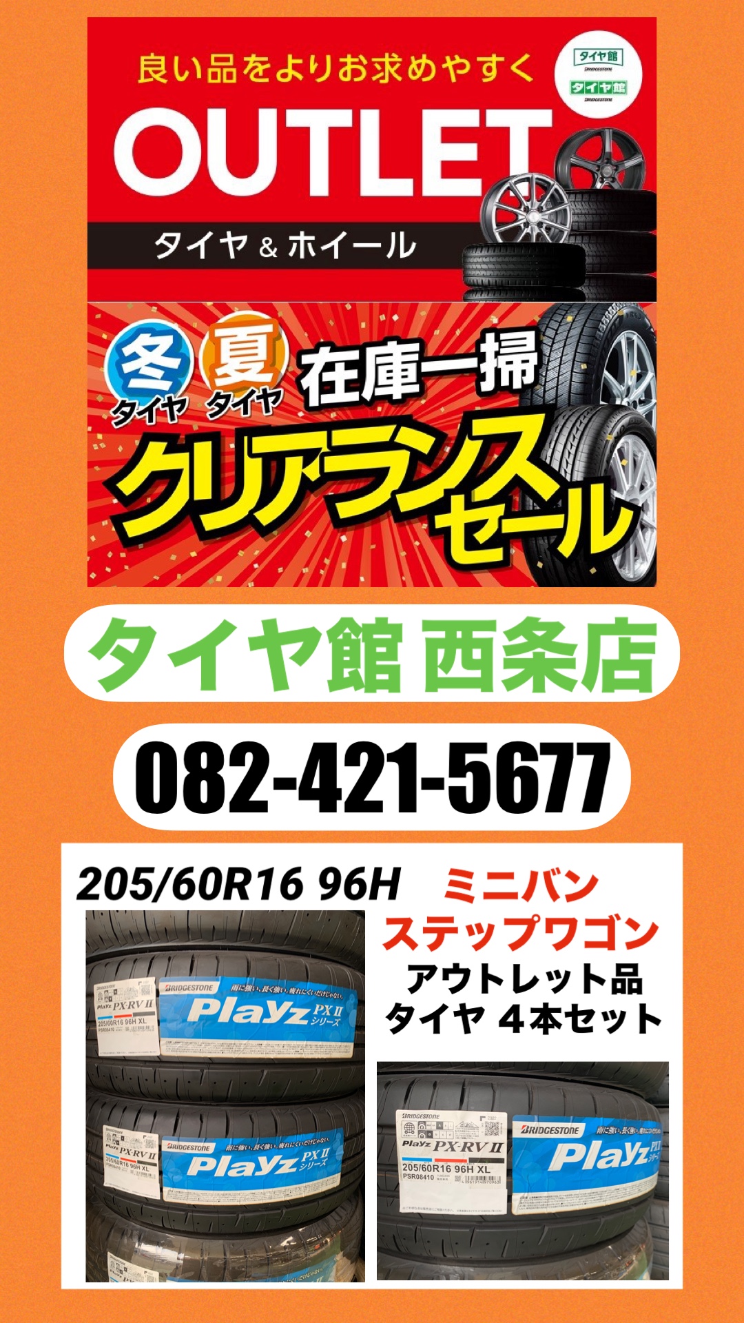 【 205/60R16 96H 】ステップワゴン・ミニバン車に★タイヤ館西条店★店頭在庫4本/1台分のみ★アウトレットタイヤ