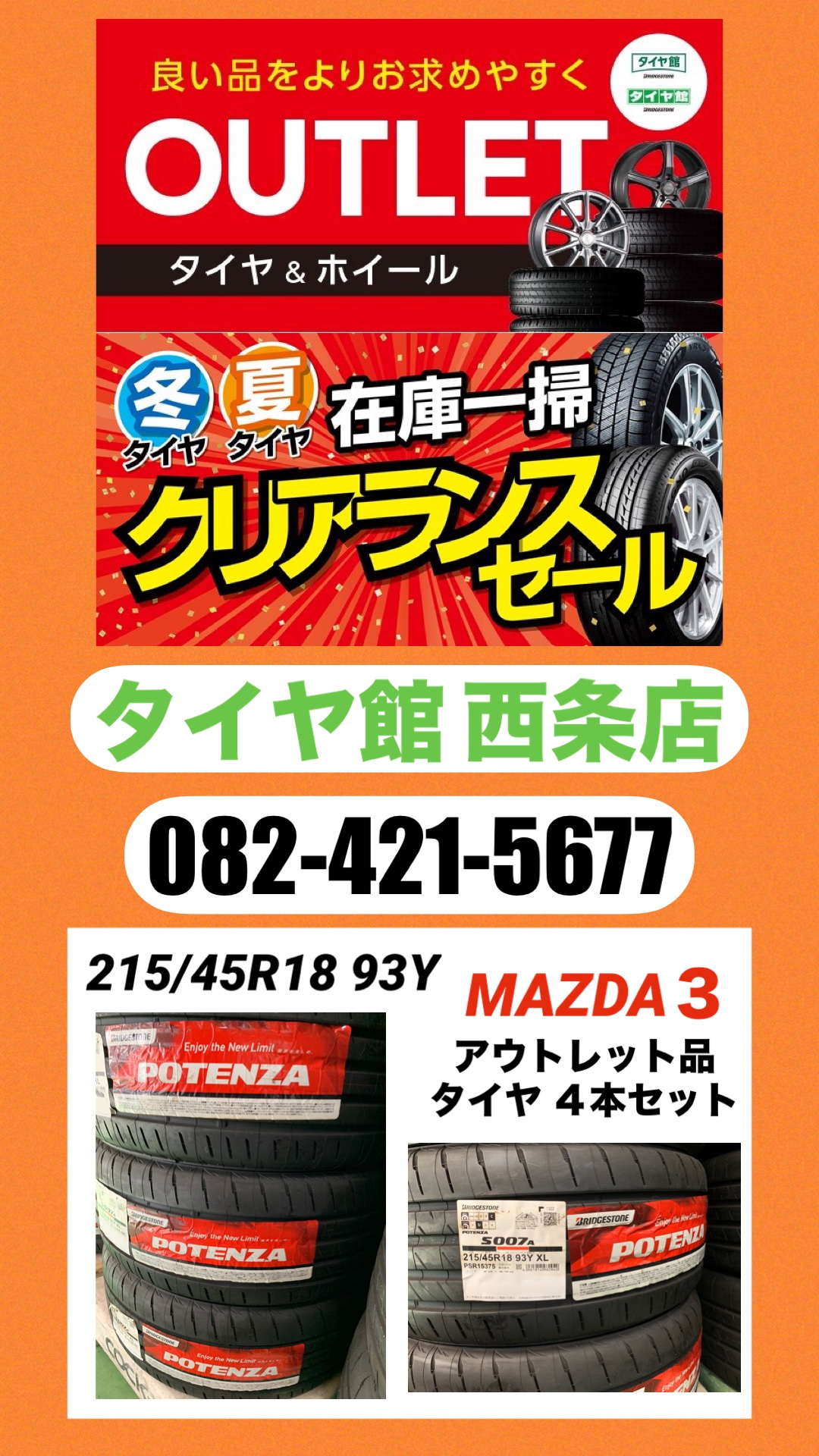 MAZDA3【 215/45R18 98Y 】タイヤ館西条店★店頭在庫4本/1台分のみ★アウトレットタイヤ