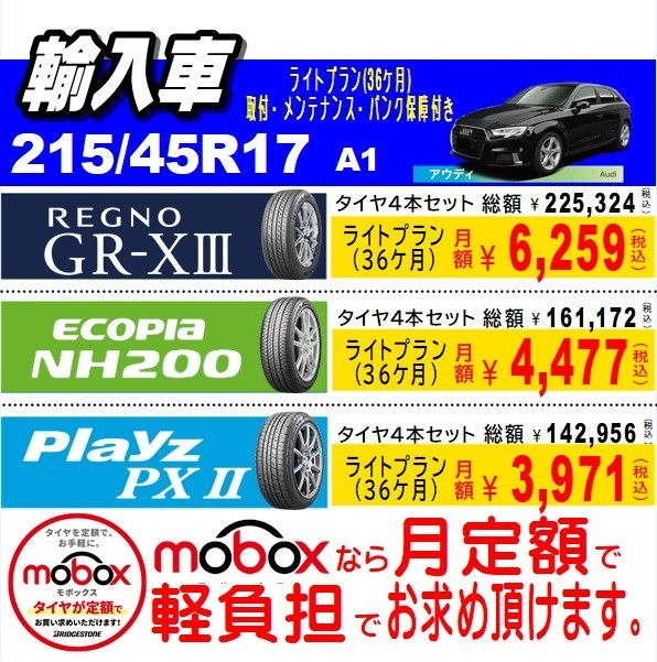 ほんの一例ですが、ブリヂストンのタイヤがお得にご購入できる「mobox」!!