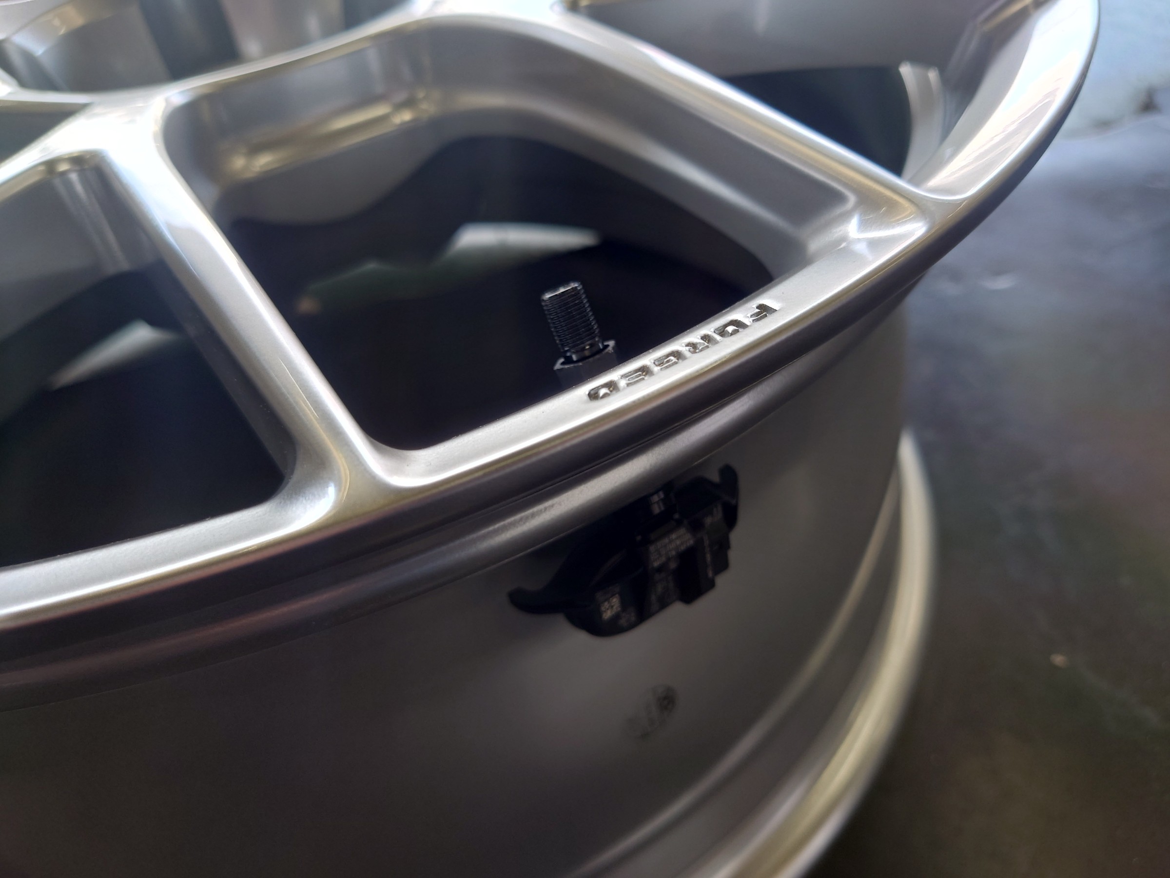 純正ホイールは、TPMS(空気圧モニタリングシステム)センサーが装着されてるのですが、ホイールから出ているバルブ部分はゴム製になっており、後付けホイールに移植することが不可能です。