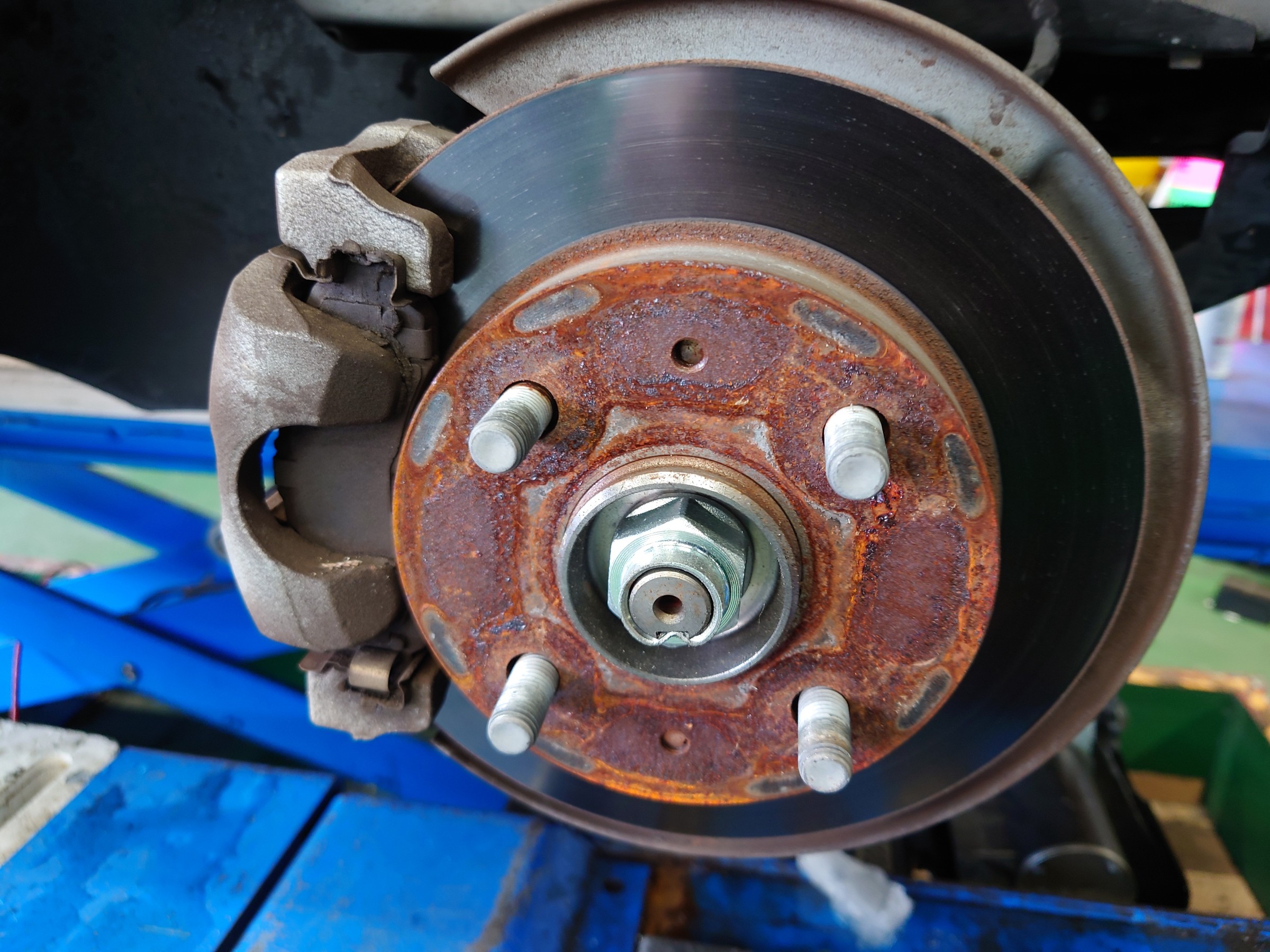 ハブの錆が酷くなると、ホイールのフィッティングが微妙に変わったり、ホイールナットやボルトの緩みの原因となることも。