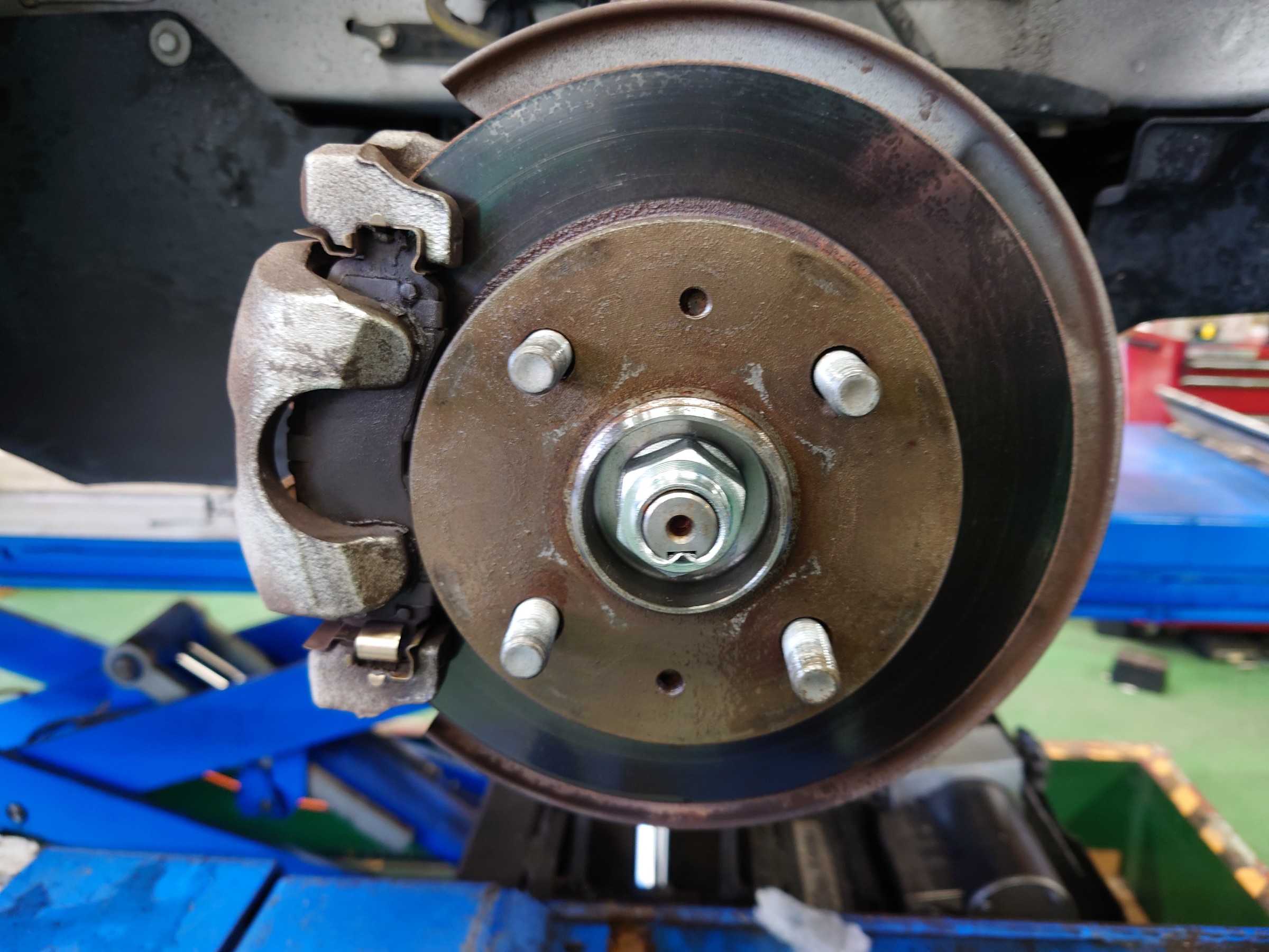 タイヤ交換は上野スタッフにお任せしてる間に、私はハブ防錆の作業を実施!