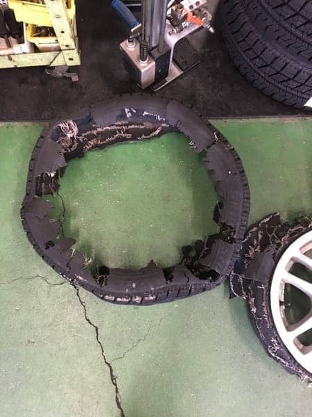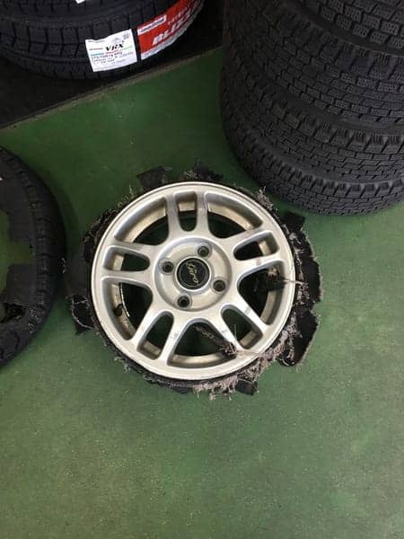 パンクって怖いです((+_+)) ポスト 2016年3月8日 パンクに気付かずに走行されていたらしくタイヤとホイールがギリギリついている状態だったのですがクルマを上げてみると写真の様なタイヤだけ外れるとゆうかなり危険な状態でした(・_・;)後ろのタイヤはパンクしてても気づかずに乗ってしまうことがあるので車に乗る前のタイヤチェックの大切さに改めて気づきました! 担当:古邑