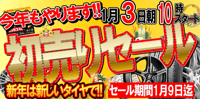 タイヤ館西条店は、本日3日より初売りセール開催です。