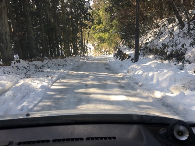 昔こんな感じの道で溝の無いスタッドレスで止まることが出来ずに怖い思いをしたことがあるのでヒヤヒヤです!