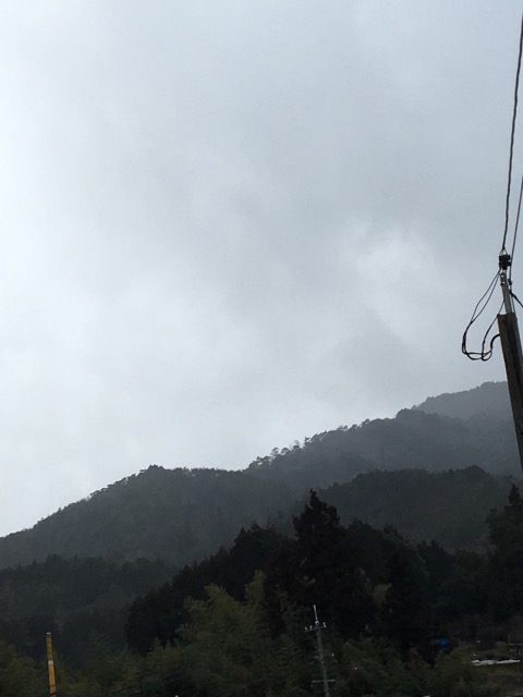 西条は曇り空でしたが現地ではあられ混じりの天気、山の上の方は白く霞んでる……
