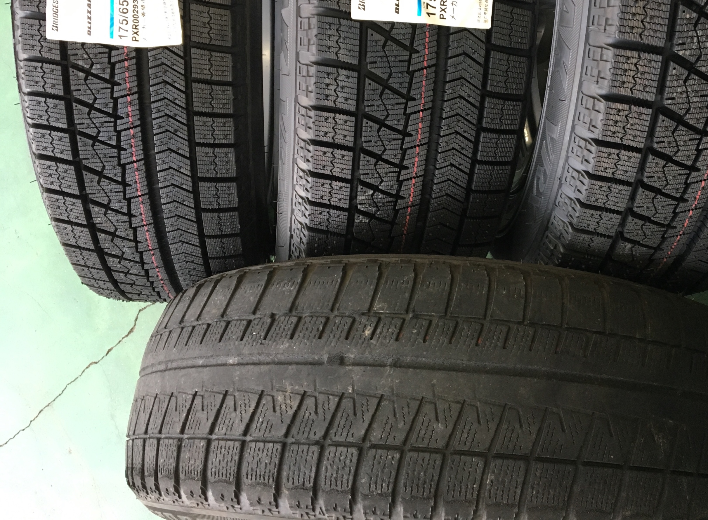 VRXを選んで頂き早速交換しました、しっかり使われたスタッドレスを新品に交換です。