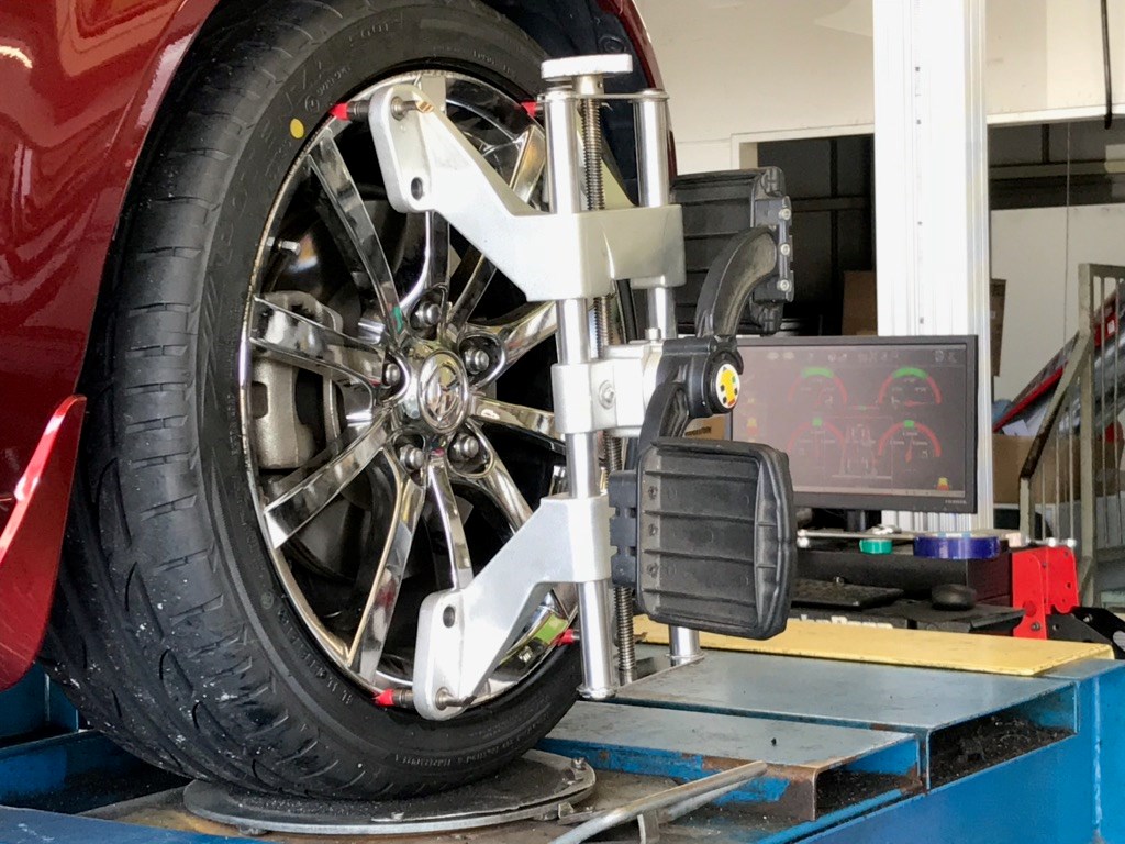 交換前のタイヤにかなりの偏摩耗の症状(タイヤの内側摩耗)があり、せっかくなのでアライメント実施