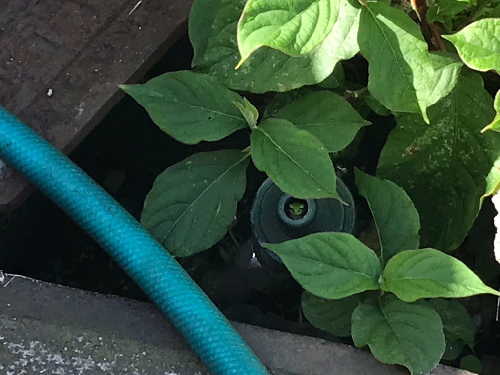 (タイヤ館のピットわき)水道の蛇口をひねろうとしたら、こんなのが居ました