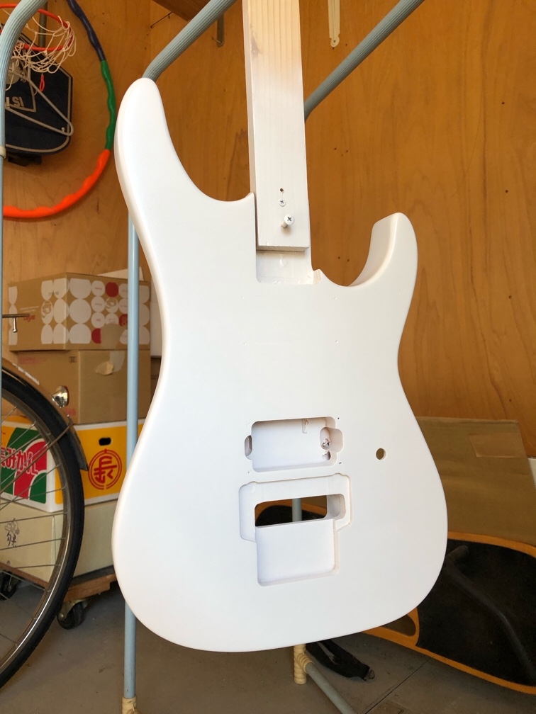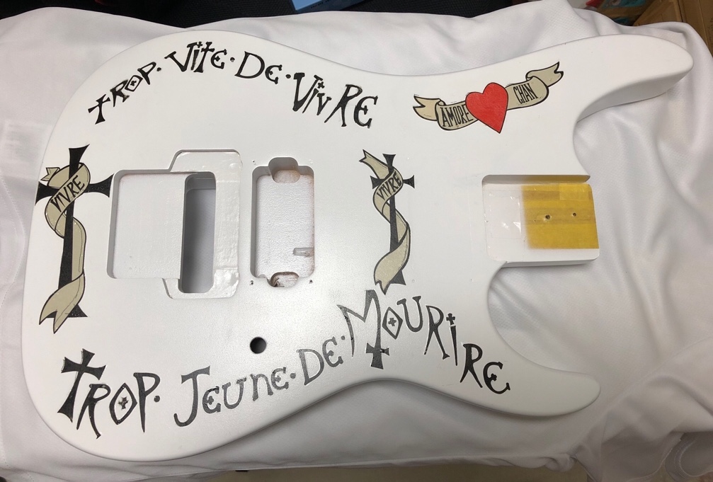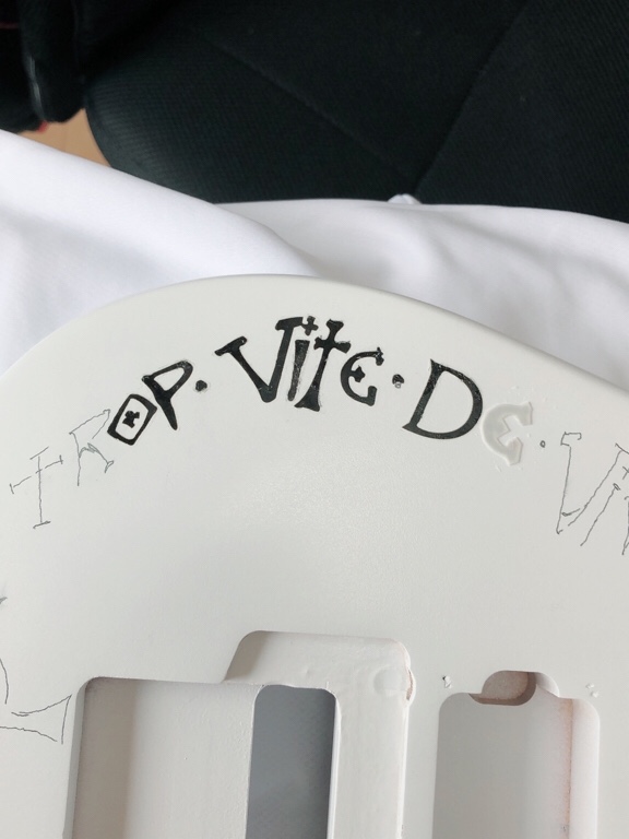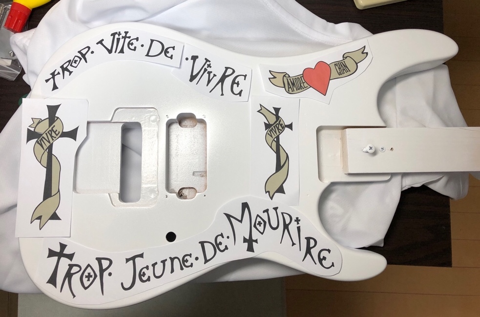 白抜き文字で位置決めしたら、ボディに書き写していきます。