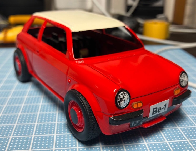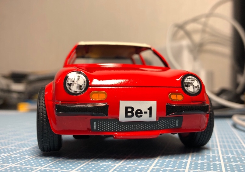 Be-1チョップドルーフ出来ました!(ミニ四駆だよ) ポスト 2019年3月15日 こんにちは村岡です! 出来ました!速攻2日で作りました。 あ〜休みがミニ四駆で消えた.... これです。 ルーフはクリームにボディは赤にしてみました! ルーフが低いのわかるかな?(相変わらずの机の上ですが...) もう少し飾りをつけて終了の予定です。