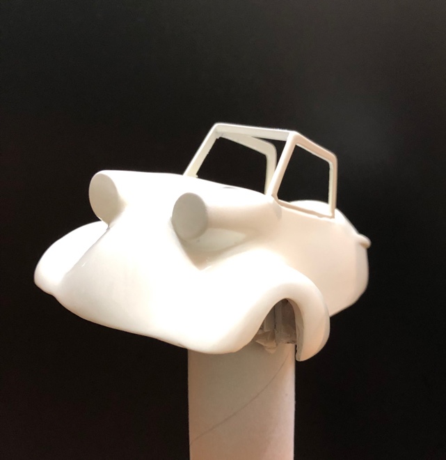 プラ板を切った貼ったして大体の形をつくります、そこからパテを盛っていって整形します。