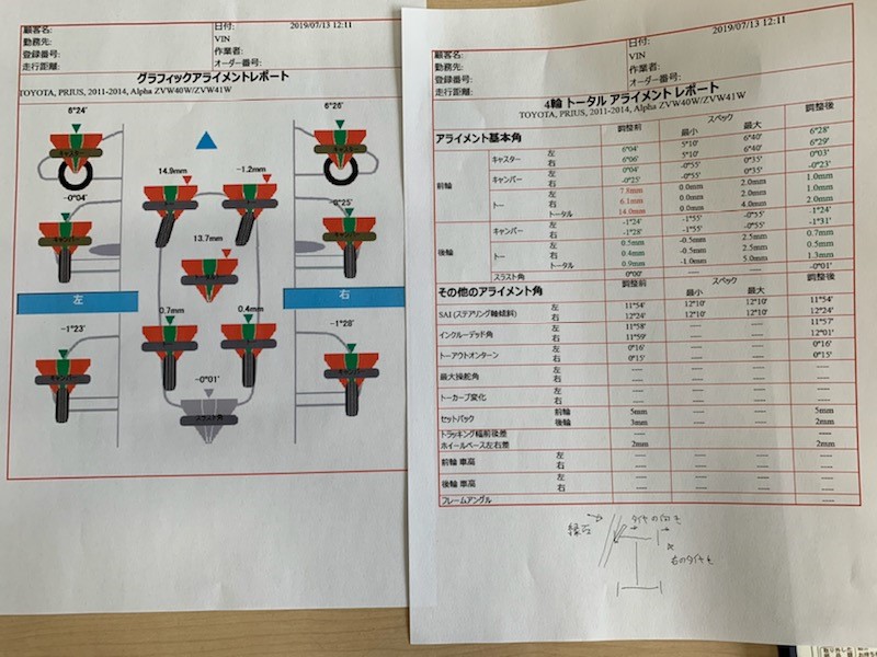安全の為にも接触などがありましたらお早めにアライメント測定をおすすめします。