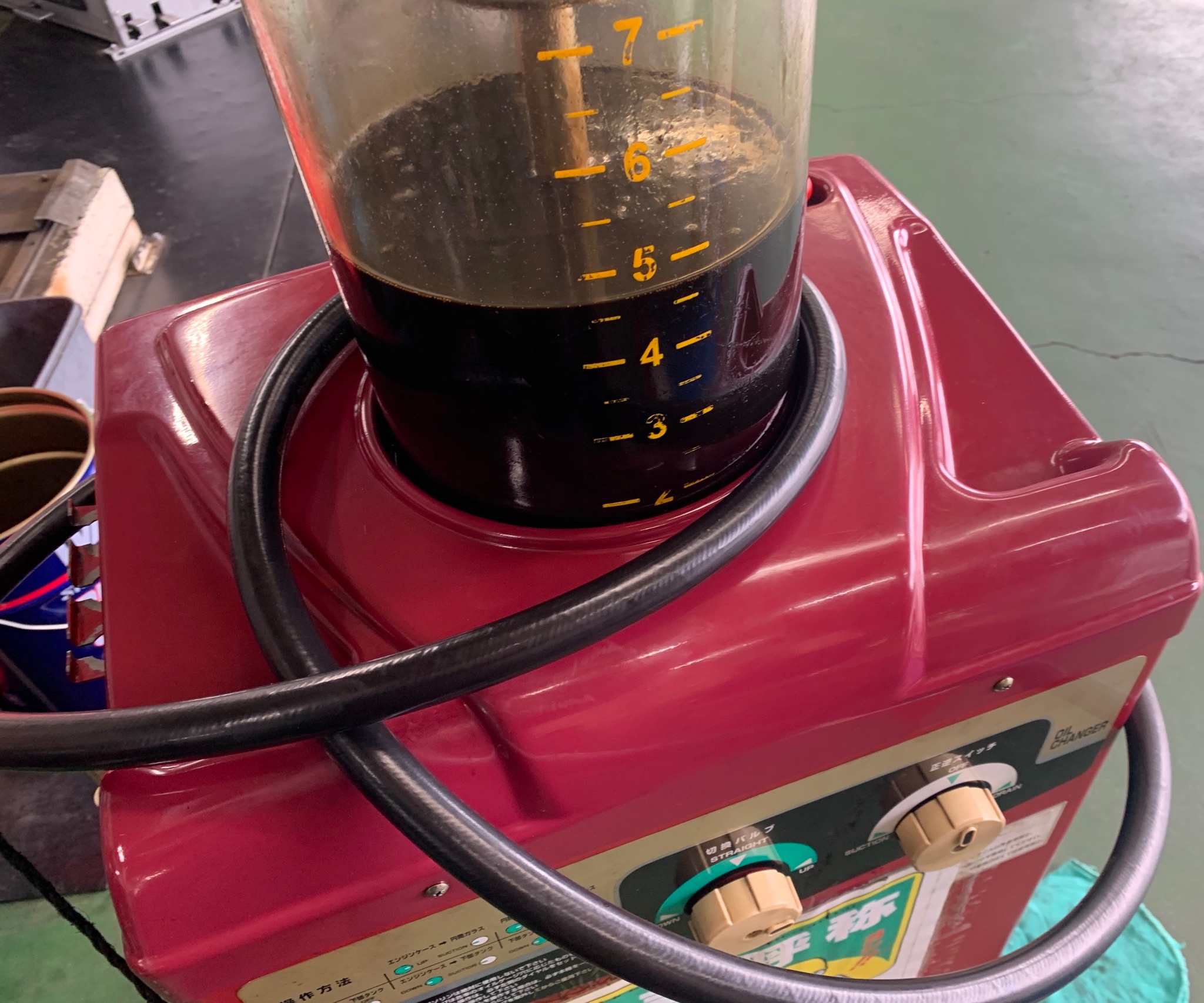 劣化したオイルを抜き取る合間に安全点検とタイヤ空気圧の調整も実施しました!