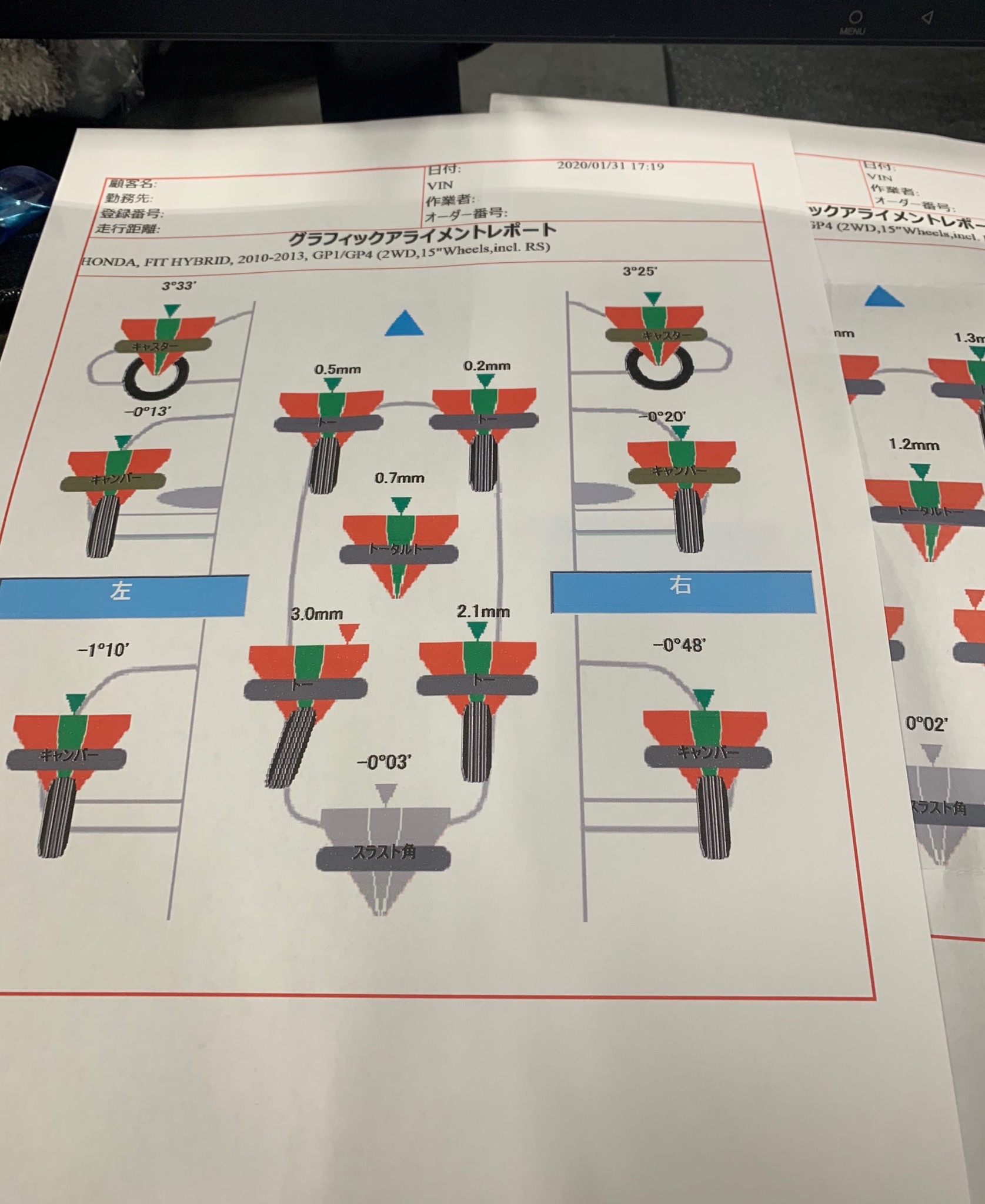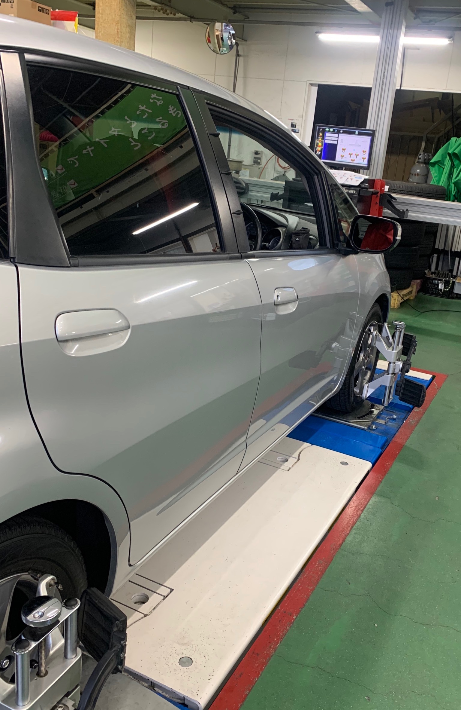 今日は、タイヤ長持ちプランをご利用なので、一緒にアライメントの測定も実施します、