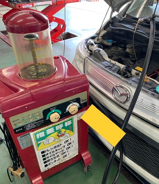 機械によるオイルの抜き取り→新しいオイルの給油