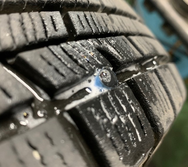文字通り、タイヤの内側からの修理をします。