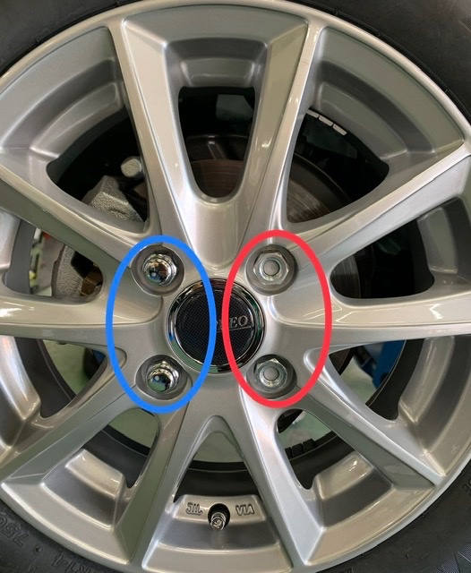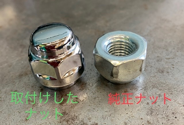 赤丸が純正ナットを使った場合