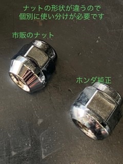 ホンダ車の純正ホイールなのですが、純正ナットは形状が特殊な「球面ナット」が採用されてます、