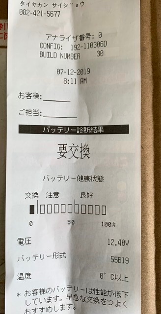 バッテリー診断結果が要交換