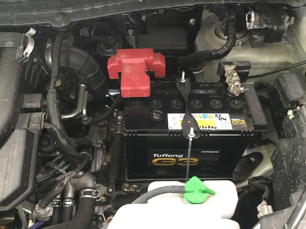 続いて、バッテリー交換です。アイドリングストップ車用のバッテリーを交換していきます。