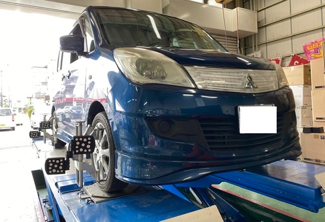 三菱 デリカD:2(MB15S)エンジンオイル交換・エアコンフィルター交換・アライメント測定