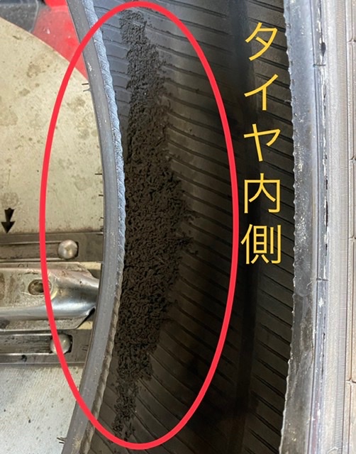 タイヤ内側は削れて粉がでています
