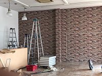 こんにちは村岡です。 どんどんお店が綺麗になっていきます! お客様の待合の壁! 綺麗なレンガ調ですよ!