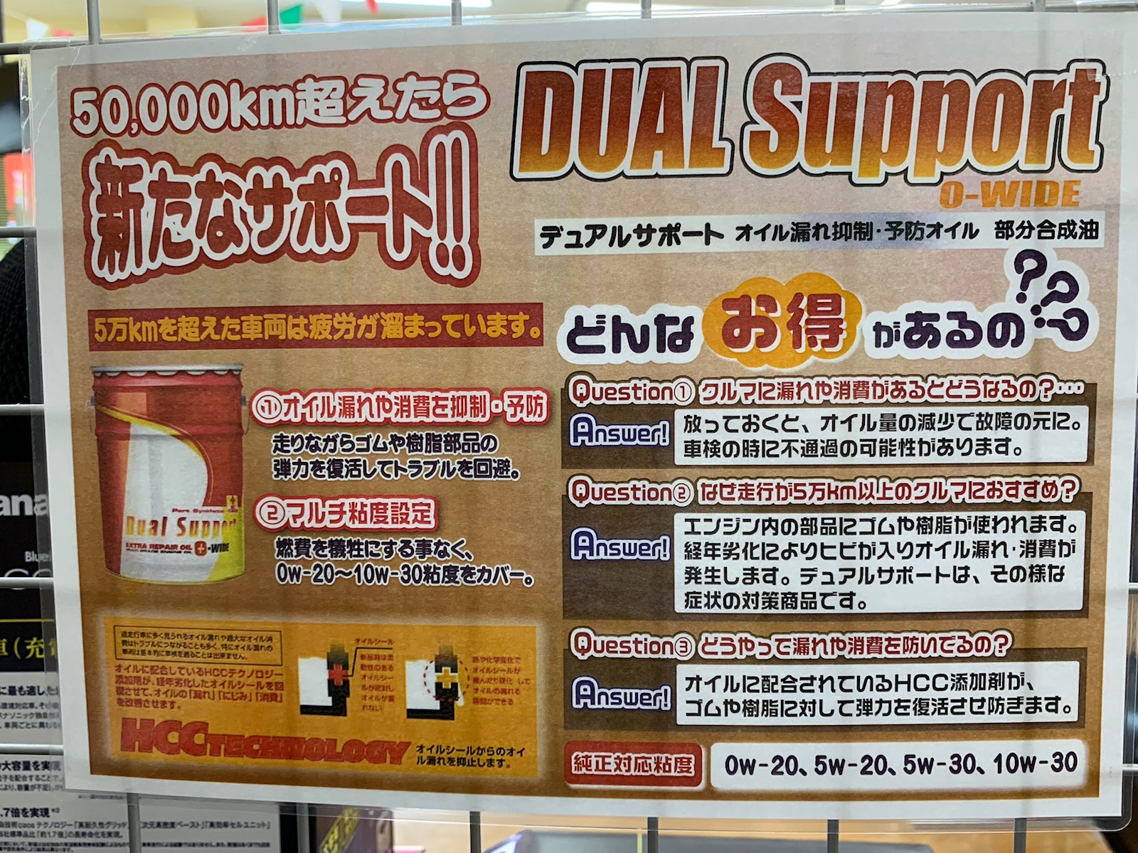 50000km超えたら新たなサポート!! オイル漏れや消費を抑制・予防 燃費にも配慮マルチ粘度設定(0w20~10W30) 長く乗り続けお車の疲れが気になる方にお勧めです