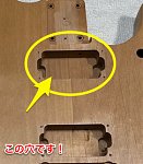 こんにちは村岡です。 さていよいよボディに取り掛かります! 先ずはネック側のピックアップ穴を埋めましょう! 木を買ってきて、この形に切りはめ込もうと思います! 寸法を測ってみると底まで20ミリでサイドの穴が28ミリ。 先ずはサイドから埋めます。 しっかり埋まったら本体ですが、なにせ工具...