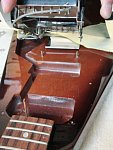 こんにちは村岡です 続きを再開ですが、まずはピックガード(白いカバー)を外したい!! 取れないよ・・・トレモロが邪魔で外れない!! 僕もこのタイプはよく知らないので、ネットを俳諧し情報収集です^^; 大体分かりましたが、結論止めてあるネジを緩めてズラしになりました(何回もやりたくないな) そ...