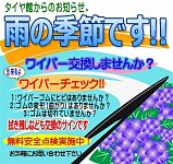 こんにちは村岡です。 そろそろ梅雨に近づいてきましたね!! 皆さんワイパーって交換されてますか? 意外と「いつ交換しったっけ?」って感じの部品ですよね~^^; これから大活躍のワイパーです、シーズン前に交換しませんか? 即交換出来ますよ~