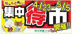 こんにちは村岡です! 今日から5月ですね〜‼︎ 先月から始まってます、集中得市セール本日最終日です! が、好評に付き5日迄延長です! 西条店だけですよ〜(^.^) 是非、お休み中のメンテナンスにご来店下さい。 また3/4/5日はご来店のお子様にお菓子もプレゼントしてますよ〜‼︎