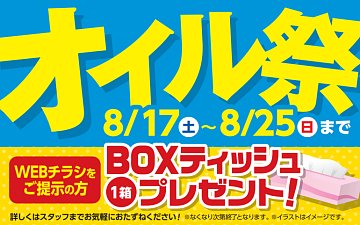 【お盆にお出かけされた方、愛車に癒しを!】オイル祭開催中!!