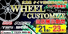 いつもご覧いただきありがとうございます。 広島県東広島市にあります、タイヤ館西条店です。 現在開催中のホイール&カスタマイズフェア 「ホイールの展示会」まで 残り 4日 となりました! 当日は大人気ホイール(BBS・RAYS などなど) 普段なかなか現物を見ることのできないホイールを展...