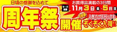 明日11月3日からは日頃の感謝を込めて「周年祭」を開催致します。 ご来店のご家族様にBOXティッシュとお子様にはジュースをプレゼント。 またお買得なスタッドレスセットやこれからの時期にも活躍する、オールシーズンタイヤなどをご用意。 期間中タイヤ4本ご成約のお客様には、サイコロの出た目の...