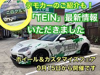 9月15日からタイヤ館7店舗合同「ホイール&カスタマイズフェア」開催!!ホイールや車高調、ダウンサス、その他カスタマイズパーツをお得にご提案します。 今日は、サスペンションブランドのTEINさんが県外からこちらの店舗まで展示のリフレッシュや、最新のカタログを補充などの為にご来店いただきま...