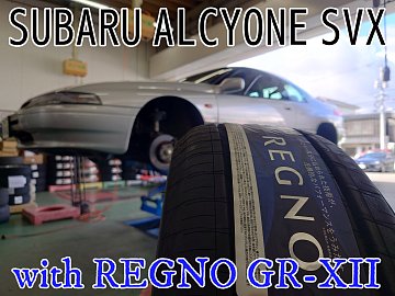 こんにちは。 タイヤ館西条ホームページをご覧いただきまして、誠にありがとうございます。 今回の作業事例のご紹介は、およそ30年前のお車にタイヤ交換実施のご紹介です! お車は“スバル アルシオーネSVX”。 装着いたしますタイヤは、コンフォートタイヤのフラッグシップ、“レグノGR-XII”になりま...