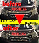 こんにちは村岡です。 今回は当店のHPでもおなじみの、「ヘッドライトコーティング」の紹介です。 先日WEB予約にてヘッドライトコーティング作業を頂きました。 予約当日はご主人様が奥様の車「スペーシア」に乗ってご来店 早速事前診断からスタートです。 全体的に白くくすんだ状態ですが、傷や黄...