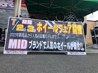 こんにちは村岡です。 今日から二日間MIDブランドで人気のホイールを展示して、ホイールキャンペーンを開催です。 現物を見て頂けるチャンスですので、是非この期間にお立ち寄り下さい。