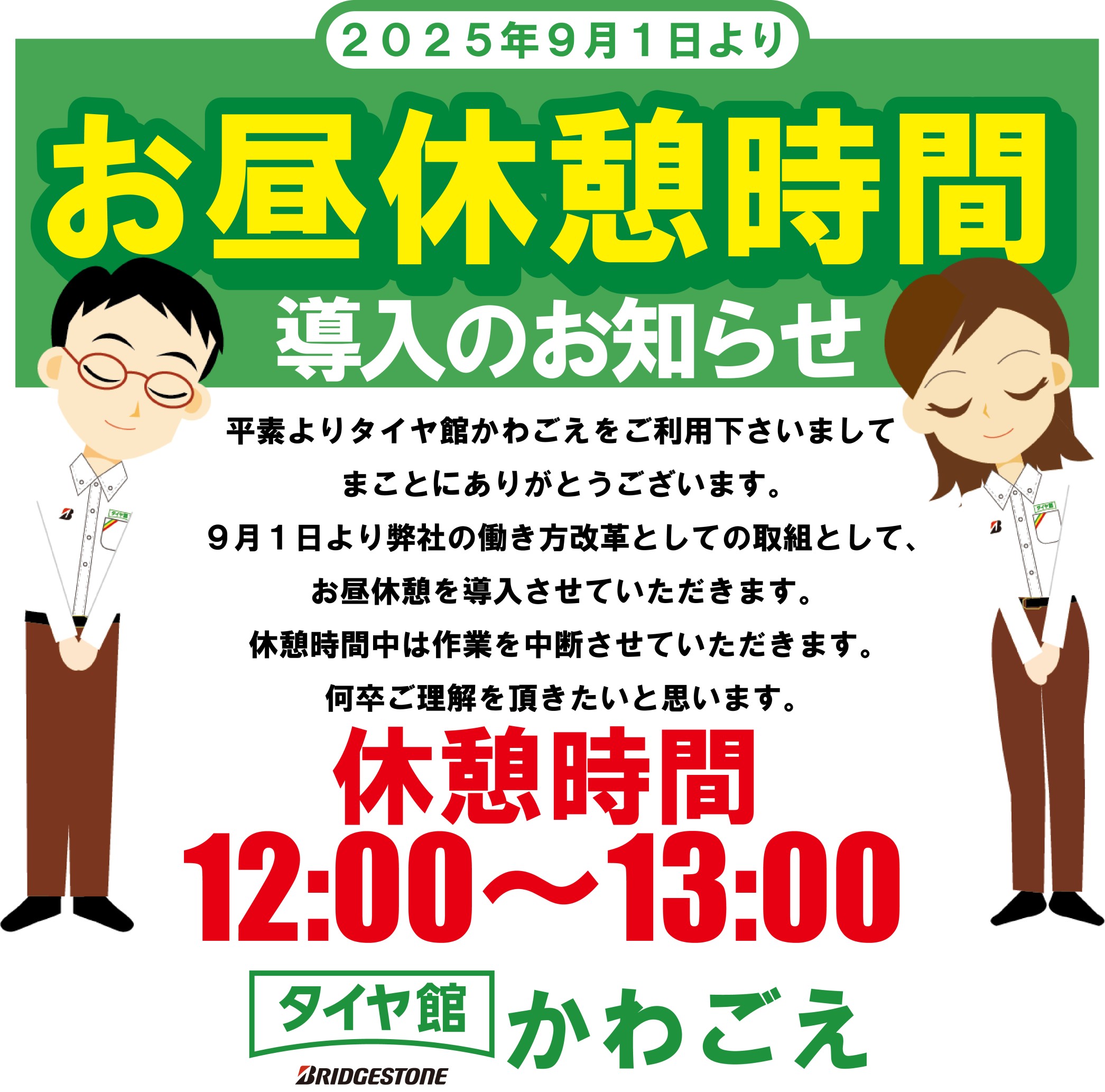 お昼休憩時間導入のお知らせ