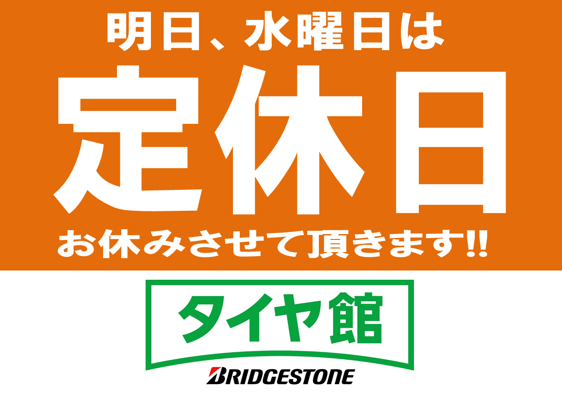 明日は【定休日】となります! ポスト 2020年10月13日 いつもタイヤ館かわごえ店のHPをご覧いただきありがとうございます(・ω・)/ 明日は水曜日となりますので当店は【定休日】とさせていただきます。 木曜日からまた元気に営業させていただきます!! 定休日明けもたくさんのご利用・ご来店をスタッフ一同お待ちしております♪ 担当:松井
