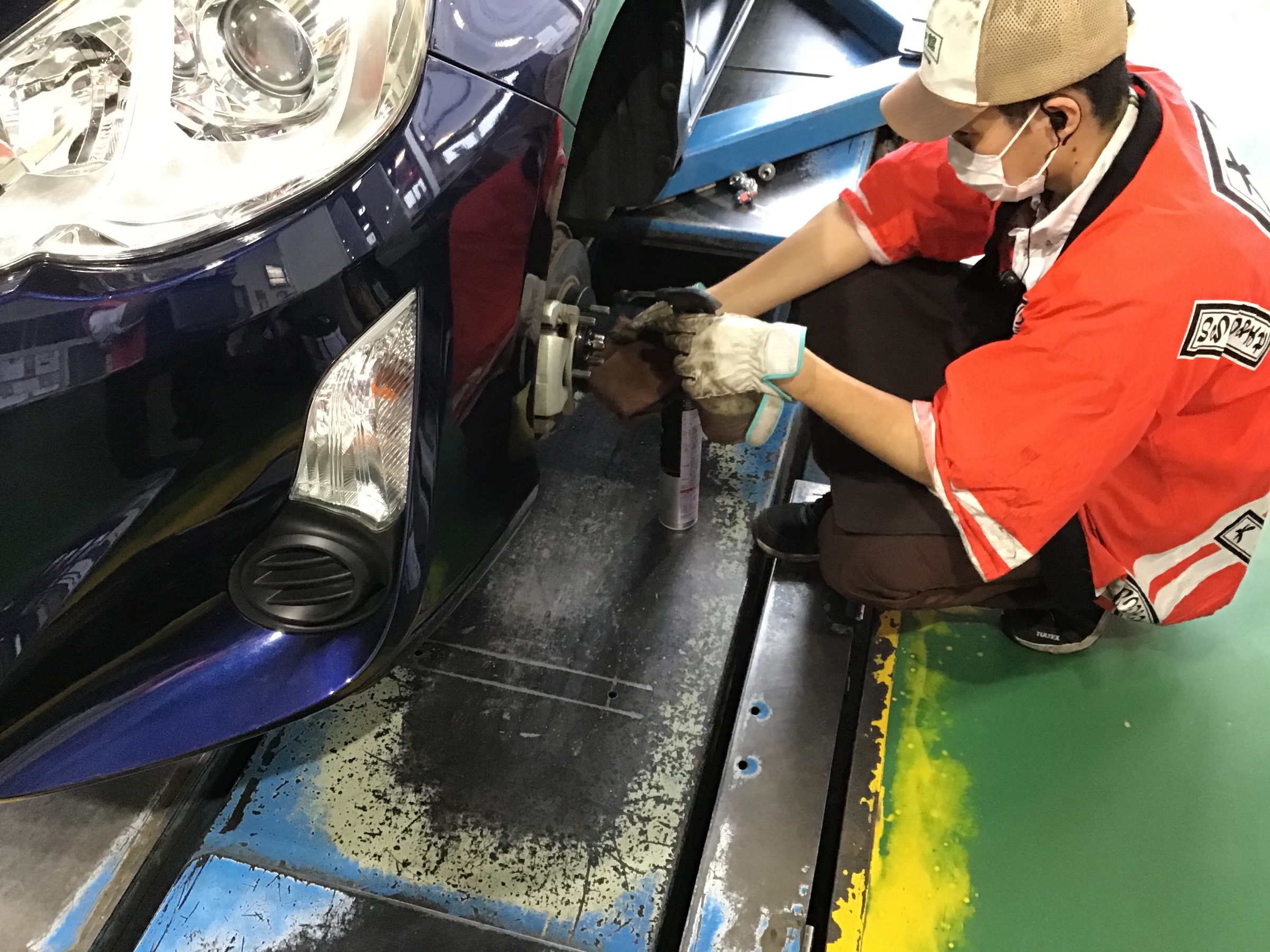 防錆コーティング中〜 ポスト 2021年4月25日 こんにちは〜 スタッフ日記を見て頂きありがとうございます♪ 結構紹介してきている防錆コーティングをやっていたので その姿を撮りました♪ こんな感じにかけていきます! いつでもできますが、タイヤ交換や履き替えのタイミングが オススメですのでぜひお試し下さい♪ 担当:畑中