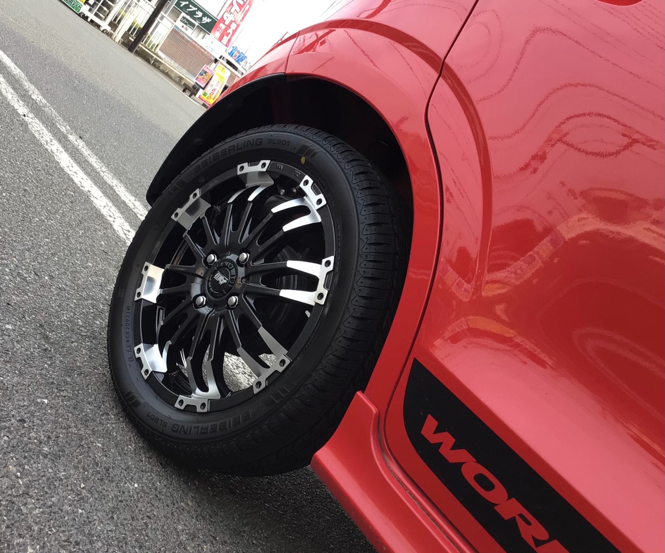 タイヤ&ホイールセット装着 ポスト 2021年6月22日 アルトワークスにちょっとイカツ目のアルミをチョイス。 大きく雰囲気が変わってかっくイイ(^.^) フロント リヤ。 最後はきっちりアライメント調整で終了。 カテゴリ:ホイール関連 タイヤ関連 その他 担当:大久保